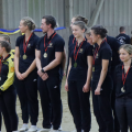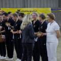 Am Abend durfte das M-Team nochmal antreten. Unter nicht ganz einfachen Bedingungen starteten sie auf einem etwas verspannten Hagrid. Voltis, Longenführerin und Pferd holten nach einem langen Wochenende noch einmal alles aus sich raus und kämpften sich durch die Kür. In der Siegerehrung erreichten sie dann für die Kür im 2. Durchlauf eine Wertnote von 6,680 und damit den 3. Platz. Dann kam die Meisterschaftsehrung und es war spanend für die drei M-Teams, da keines wusste, wer welchen Platz final belegte. Das M-Team aus Bietigheim siegte ganz knapp und holte sich den Titel "Württembergischer Meister 2022". Eine Endergebnis von 6,2. Ihr seid echt spitze! Damit habt ihr euch den Start beim Deutschen Voltigierpokal der M-Gruppen in Schwaiganger wirklich noch einmal verdient.