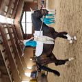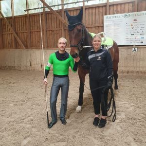 Morgens startete unser Einzelvoltigierer Tobias, mit seiner Longenführerin Amelie auf Hagrid. Für die drei war das in dieser Kombination das erste Turnier. Leider reichte es nicht für die erhoffte Aufstiegsnote, dennoch sind sie mit dem abgelieferten Programm zufrieden und erreichten den 3. Platz.