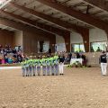 Am Nachmittag durfte das M-Team ihre Turniersaison im eigenen Verein starten. In der Pflicht hatten sie und vor allem auch Caro als Longenführerin mit Hagrid zu kämpfen. Sie konnten trotz allem die Übungen in der Zeit turnen. Leider verletzte sich Belinda bei ihrem Abgang ihr Knie. Daraufhin musste das Team ihr weiteres Vorgehen besprechen. Für Belinda war das Turnier leider beendet, da sie zu einer Untersuchung ins Krankenhaus fahren musste. Die Mannschaft entschied sich mit einer Voltigiererin weniger zu starten und ihre Kür kurzfristig anzupassen und weiterzukämpfen. In der Kür präsentierte sich Hagrid leider wieder nicht von seiner besten Seite, doch die Voltis rissen sich zusammen und lieferten eine solide Kür ab. Schließlich erreichten sie den 7. Platz. Belinda wünschen wir eine rasche Genesung und einen schnellen Heilungsprozess.