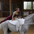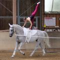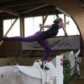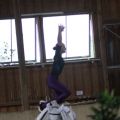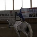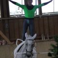 Den Anfang haben die Einzelvoltigierer am Samstag auf Romeo gemacht. Ganz zufrieden konnten wir abgesehen von Tobi mit unseren Leistungen nicht sein. Jeder hatte Patzer oder sogar einen Sturz drin, die Leichtigkeit hat leider etwas gefehlt. Das geht auf jeden Fall noch besser!