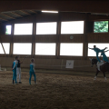 Erstmals zur Schau getragen werden konnten die Turnieranzüge am 1. Juli in Mühlacker. Zu früher Stunde und mächtig nervös startete die Gruppe im Rahmen des Galopp-Schritt-Wettbewerbs. Die Mannschaft zeigte Pflichtübungen im Galopp und die Kür im Schritt und erhielt dafür von den Richtern wertvolle Tipps und die Endnote 3,976.