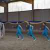 Als nächstes betrat das L-Team erneut den Turnierzirkel. Und es lief alles andere als perfekt. Als erstes wurde Beli bei ihrem Aufsprung "abgeklingelt", was sie etwas durcheinander brachte und erst beim zweiten Versuch auf Romeo´s Rücken kniete. Dann folgte der Sturz von Annett und Beli in einer eigentlich sicheren Position. Aber auch nach einem Sturz kann man aufstehen und weitermachen. Doch als dann Romeo Annett aus dem knien auf der Kruppe abbuckelte, war allen klar, dass weitermachen keinen Sinn hat. Also verließen sie den Turnierzirkel genau so wie sie gekommen waren.