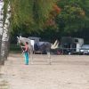 Da sie sich sehr viel Zeit zum Verladen eingeplant hatten, waren sie früher in Nordheim als gedacht. Gemeinsam schauten sie sich noch die letzten Starter der Prüfung vor der Mittagspause an. Dann musste das M-Team auch schon Carneol richten und ihn führen. Leider wollte Romeo nicht alleine im Hänger stehen bleiben und bevor er den Hänger in seine Einzelteile zerlegt, durfte er ein bisschen grasen.