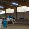 Der Samstag begann für beide Teams um 10:30 Uhr im Stall. Dort wurden die Pferde geputzt und eigeflochten und die Voltis machten sich ihre Frisuren und bereiteten sich schon Mental auf ihr anstehendes Turnier vor. Carneol macht dieses mal auch keine Probleme beim Verladen und auch Romeo trottete brav in den Hänger.