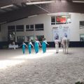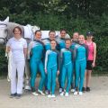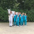 Mit der Pflicht war das L-Team echt zufrieden. Fast alle sind gestanden. Leider hatte danach Amelies Rücken ihr Schmerzen bereitet worauf sie gemeinsam mit den Richtern entschieden, dass sie in der Kür nicht mitstarten wird. Daraufhin mussten sie die Kür noch etwas umbauen. Sina machte den letzten Dreierblock und und Veronica machte zusätzlich noch einen Rückwertsstehen. Leider sprang sie bei ihrem zweiten Block gegen den Griff woraufhin sie nicht mehr aufs Pferd ging um sich nicht noch mehr zu verletzen. Aufgrund dieser Entscheidung fielen zwei schöne Übungen von Lotta weg, die sie dann improvisiert zeigen musste. Romeo lief aber ganz gut und wollte nur ab und zu etwas traben aber er hat zur Abwechslung einmal nicht versucht zu buckeln.