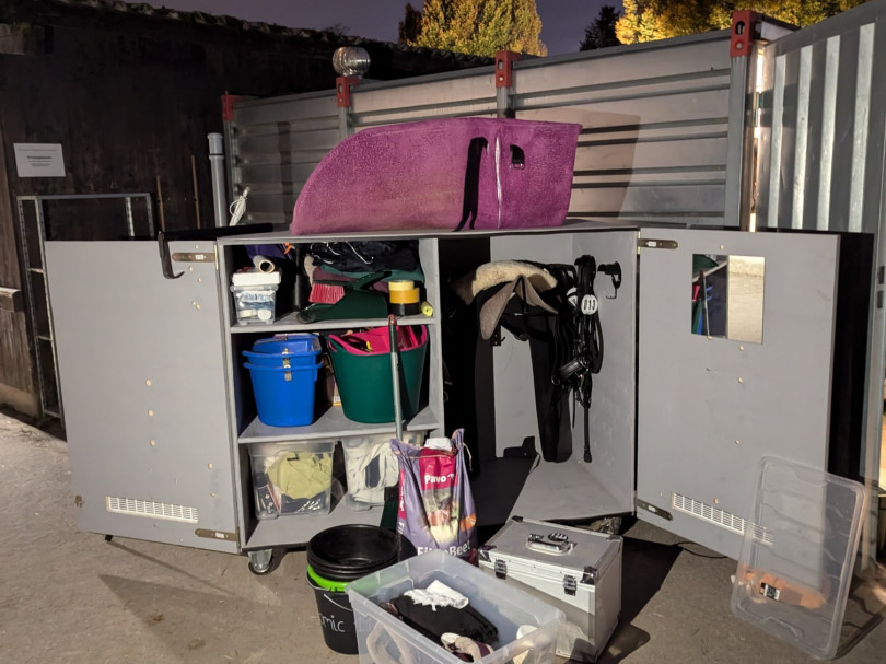 Am Mittwoch Abend ging es los, alles musste gepackt werden - und das war einiges. Zum Glück haben sie einen tollen Schrank, in den (fast) alles rein gepasst hat. Trainiert wurde an dem Tag nicht mehr. Bis alles fertig im Hänger war, dauerte es dann doch länger als gedacht.
