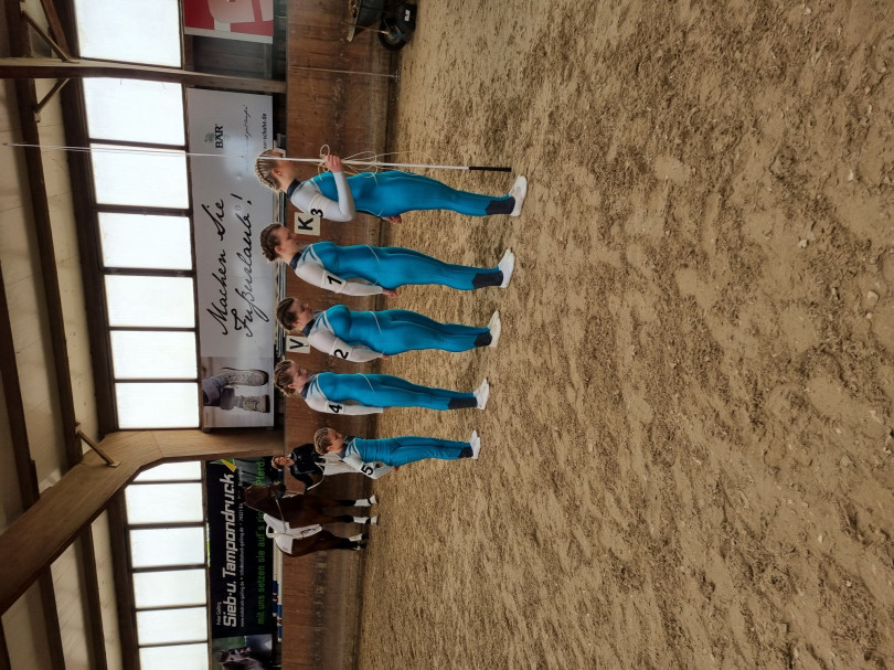 Bereits am Freitag wurde die Anlage für das Turnierwochenende vorbereitet. Durch viele Helfer war der Aufbau schnell erledigt. So konnten wir am Samstag gut vorbereitet starten. Vormittags fanden die Prüfungen der Einzelvoltigierer und A-Gruppen statt. Nachmittags ging es mit den M-/L- und Juniorgruppen weiter. Hier durfte unser M-Team die Bietigheimer Turnier Saison einleiten. Sie legten mit einem souveränen Pflichtstart vor, worauf eine grandioser Kürdurchlauf folgte. Damit konnten sie sich den ersten Platz in ihrer Prüfung sichern. Nach so einem erfolgreichen ersten Start schauen wir positiv auf die kommende Turniersaison.
