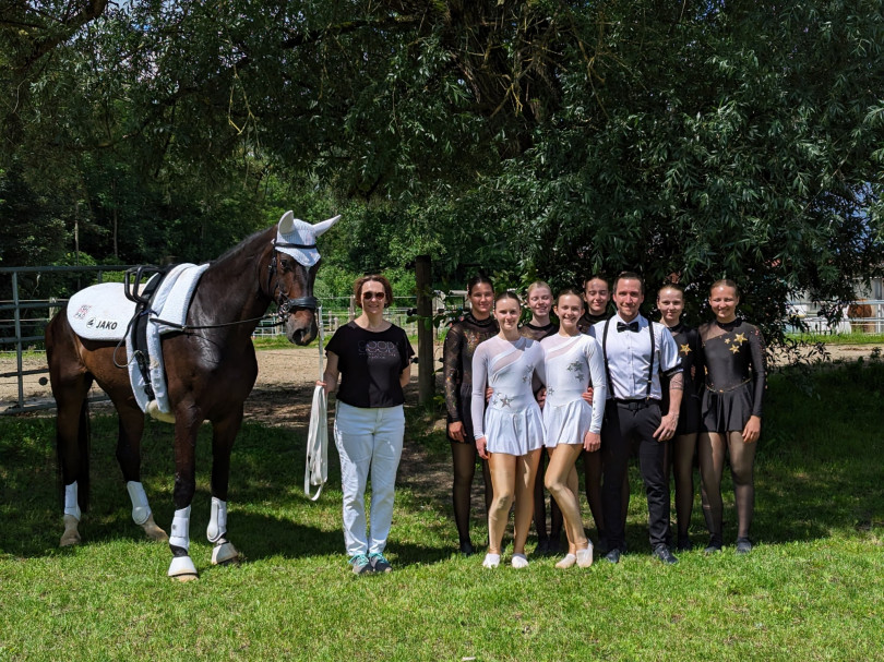 Also haben wir uns mit einem ganz guten Gefühl für die Kür umgezogen und Comic etwas Ruhe und Beine vertreten gegönnt. Dann war es aber auch schon wieder so weit und nach dem Aufwärmen hieß es wieder: „Sweet Dreams“. Und wie es Sitte ist für unser Team, haben wir natürlich zum letzten Turnier nochmal was über den Haufen geworfen - sonst wäre es ja langweilig :-D.