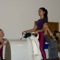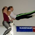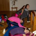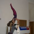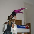 Statt Carneol durften wir Romeo, das Pferd unseres L-Teams und der Einzelvoltigierer mitnehmen (Danke dafür!) und haben uns an dem Wochenende sowohl auf dem Pferd als auch am Turnpferd ausgiebig der Pflicht, vor allem dem Aufsprung und den Schwungübungen, gewidmet. Danke an die Referenten, die mit großem Einsatz dabei waren und uns wieder ein Stück weiter gebracht haben! Neben dem Voltigieren stand auch wieder das Turntraining auf dem Programm, sodass wir in der Turnhalle neben Kraft und Dehnung wieder fleißig Handstände, Räder, Handstandüberschläge, Flick Flacks und Salti geübt haben.