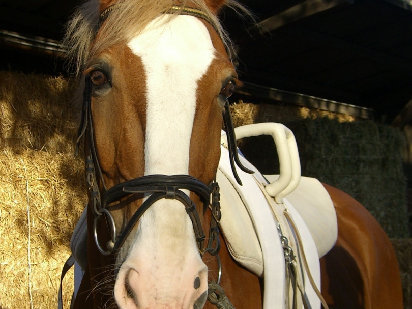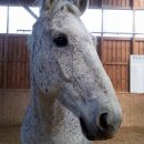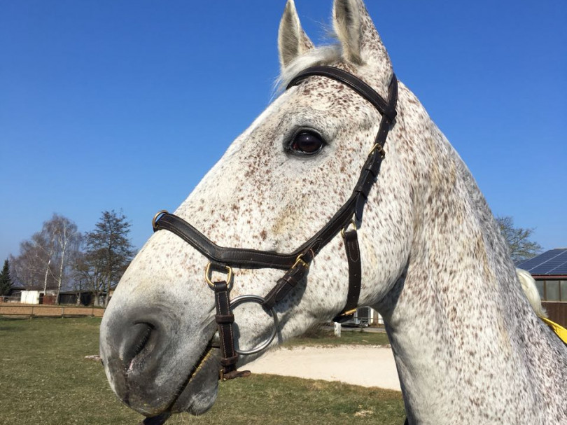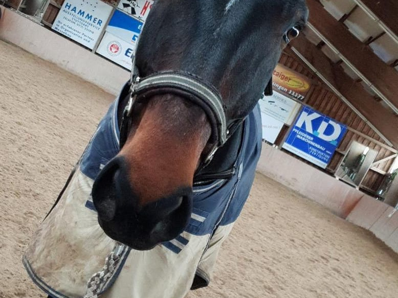 Romeo steht seit November 2012 bei uns im Stall. Schon beim ersten Mal ausprobieren hat er das Voltigieren ziemlich gelassen gesehen. 2013 hat er schon ein Turnier im Einzel bestritten und über den Winter haben wir ihn langsam auf eine Gruppenkür vorbereitet. 2014 ist er schon seine ersten Gruppenstarts gegangen und bis 2015 auch weiterhin für die Einzel und hat mit ihnen bereits seine erste Meisterschaft, die Landesmeisterschaften in Böblingen, erlebt. Mittlerweile läuft er hauptsächlich für das L-Team, aber auch für die Fördergruppe muss er ab und zu herhalten. Seit Ende 2018 ist Romeo nur noch als Ersatzpferd da. 2018 überbrückte er den Einsatz von Nobody in der Fördergruppe. Seit Anfang 2019 sollte er nur noch als Ersatzpferd eingesetzt werden. Doch nach dem ersten Trunier der L Mannschafft mit Carneol verletzte dieser sich so, dass er für den Voltigiersport nicht mehr geeignet ist. Und schon war er wieder mit dem L-Team auf Turniere gefahren. Dennoch soll langfristig ein Ersatz für ihn kommen. Außerdem läuft er zusätzlich auch noch für die Fördergruppe, da auch Nobody für die Voltigierer nicht mehr einsatzfähig ist. Seitdem Comic für die L Mannschaft läuft, kann er sich nun noch ein Stück mehr aus dem Voltigiersport zurückziehen.