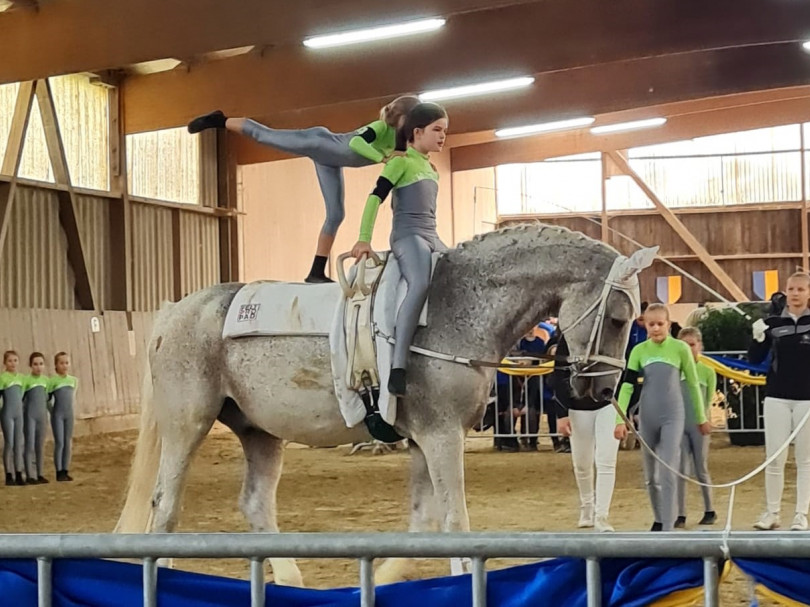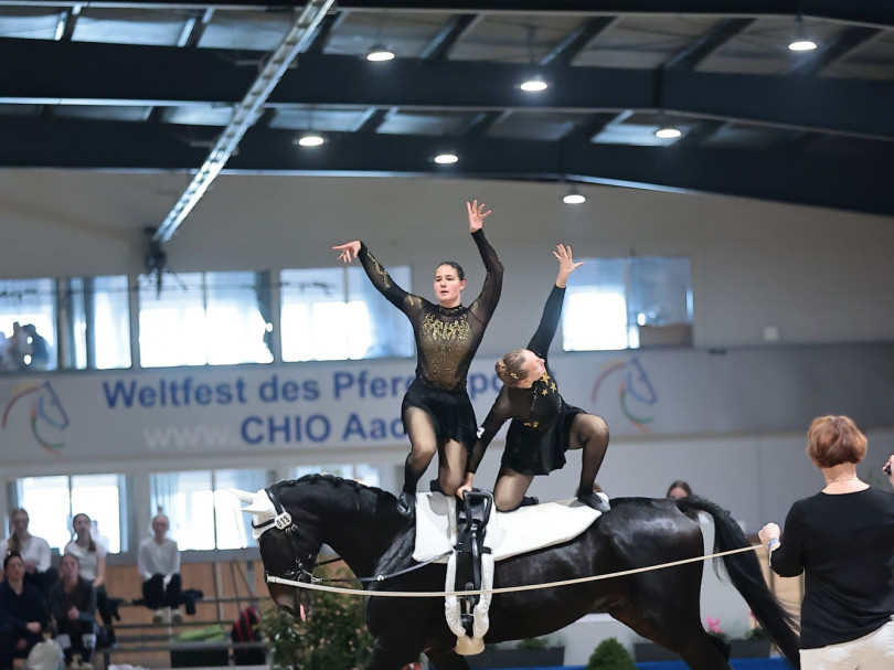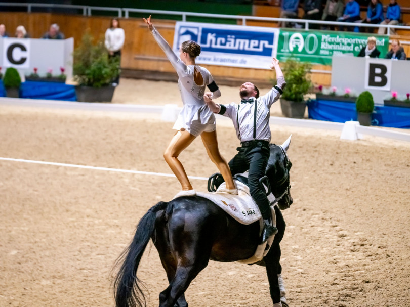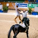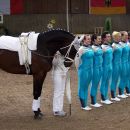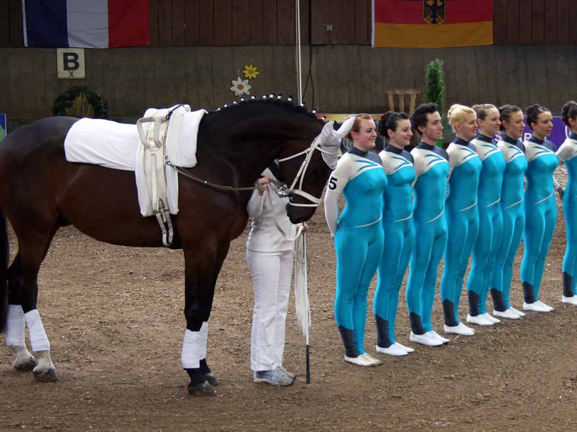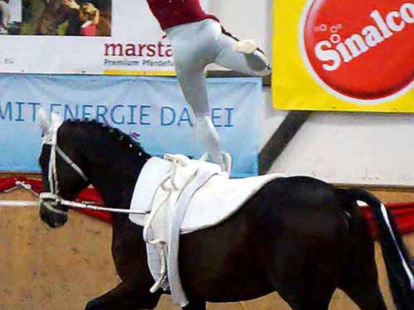 Carni befindet sich seit Frühjahr 2011 bei uns im Verein und hat 2012 seine erste Voltigiersaison für das M-Team hinter sich gebracht. Während wir Anfang 2012 langsam anfingen zu zweit auf ihm zu voltigieren, hat er uns bereits im April 2012 auf seinem ersten Turnierstart in Leonberg sicher durch den Zirkel getragen. Carni hat sich unglaublich schnell entwickelt und ist ab seinem ersten Turnier ein absolutes Verlasspferd gewesen. Wir wollen und können ihn uns mittlerweile gar nicht mehr wegdenken und sind stolz, dass er für uns auf jedem Turnier zu einem absoluten Ruhepol geworden ist. Seine Hauptaufgabe ist und bleibt immer noch das M-Team, nebenbei hat er über die Jahre aber auch immer wieder das Juniorteam und unsere Einzelvoltigerer unterstützt, bis es diese nicht mehr gab. Nach einer verletzungsbedingten Pause, ersetzt er Ende 2018 Romeo in der L-Mannschaft. Leider musste Romeo nach dem ersten Turnier der Saison wieder seinen alten Platz einnehmen, da Carni nach einer Verletzung nicht mehr für den Voltigiersport geeignet is.