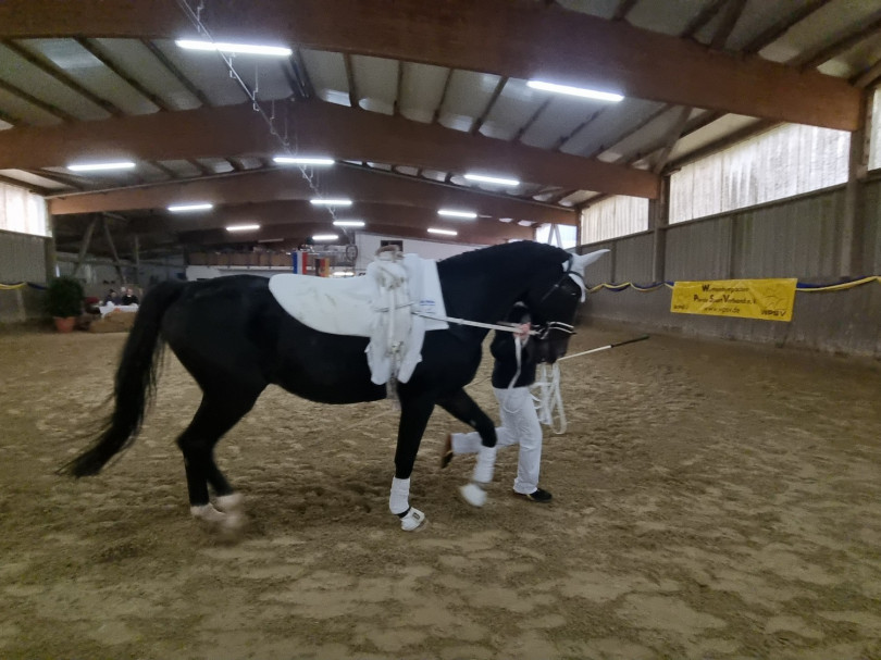 Nobody ist nach seiner Eingewöhnungsphase als Voltigierpferd leider erstmal verletzungsbedingt für längere Zeit ausgefallen. Seit Ende 2018 wurde er von dem L-Team wieder an das Voltigieren gewöhnt. Seit Anfang 2019 lief er, wie geplant für die Fördergruppe. Leider fiel er kurz darauf wieder aus, was das endgültige Volti Aus für ihn bedeutete.
