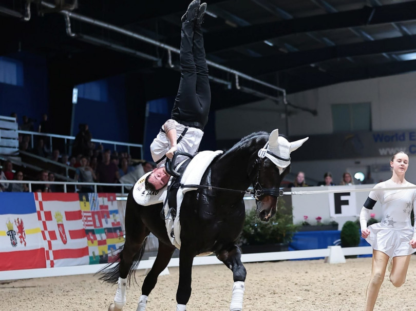 Comic wurde 2019 teil der Bietigheimer Voltigierfamilie. Von Anfang an zeigte er sich von seiner besten Seite. Er hat sich schnell an das Dasein als Voltigierpferd. Er ist super angenehm für die Voltigierer zu sitzen und auch in den Übungen läuft er wie ein Uhrwerk. In der Zeit in der Hagrid verletzungsbedingt ausfiel, lief er häufig auch unter der M-Mannschaft und auch die waren begeistert von seiner ruhigen, aber schwungvollen Galoppade. Seit Mitte 2021 läuft er jetzt für die Mannschaft Bietigheim 2 und für die Fördergruppe. Beide Aufgaben meisterte er trotz der sehr langen Pause in 2020 mit Bravour. 2022 darf er sich aber voll und ganz auf das A-Team konzentrieren. Da Romeo uns Ende 2022 verlassen musste, darf Comic zusätzlich für die A-Gruppe auch die Fördergruppe auf sich turnen lassen. In der Saison 2024 hat Comic seinen Platz im M-Team und darf zusätzlich noch für die Nachwuchsgruppe laufen. Leider ist Comic im November 2024 an einer Kolik gestorben. Wir werden ihn alles sehr vermissen.