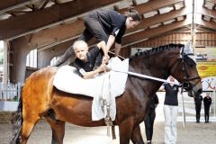 Während die Voltigierer der Fördergruppe längerfristig auf einen Wechsel in die Turniergruppen vorbereitet werden, liegt das Hauptaugenmerk in der Nachwuchsgruppe vor allem auf dem spielerischen Heranführen der Kinder an den Pferdesport.